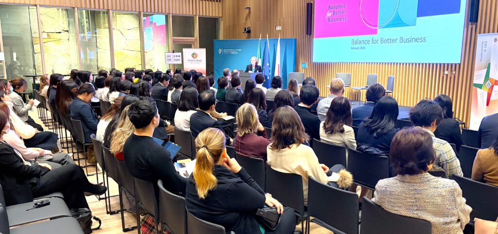 2026年2月5日(木)、駐日アイルランド大使館に隣接するアイルランドハウスにて「Women in Leadership ―女性のリーダーシップ」イベントが開催され、J-Win Executive ネットワーク(JEN)メンバーがご招待されました。メンバーを代表して、EYストラテジー・アンド・コンサルティング株式会社 小林 暢子さんがパネラーとして登壇。会場ではJENメンバー13名 、Next stage ネットワーク メンバー15名が聴講しました。